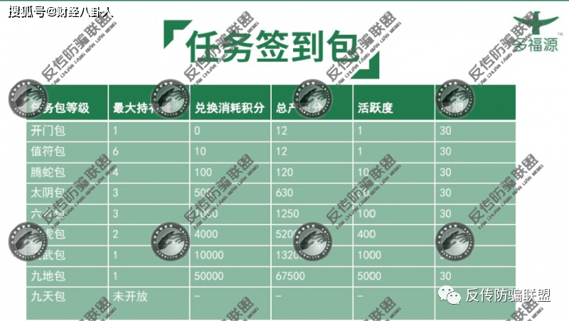 除此之外,做签到任务还能获得任务包,任务包可产生积分及活跃度,共九个等级: