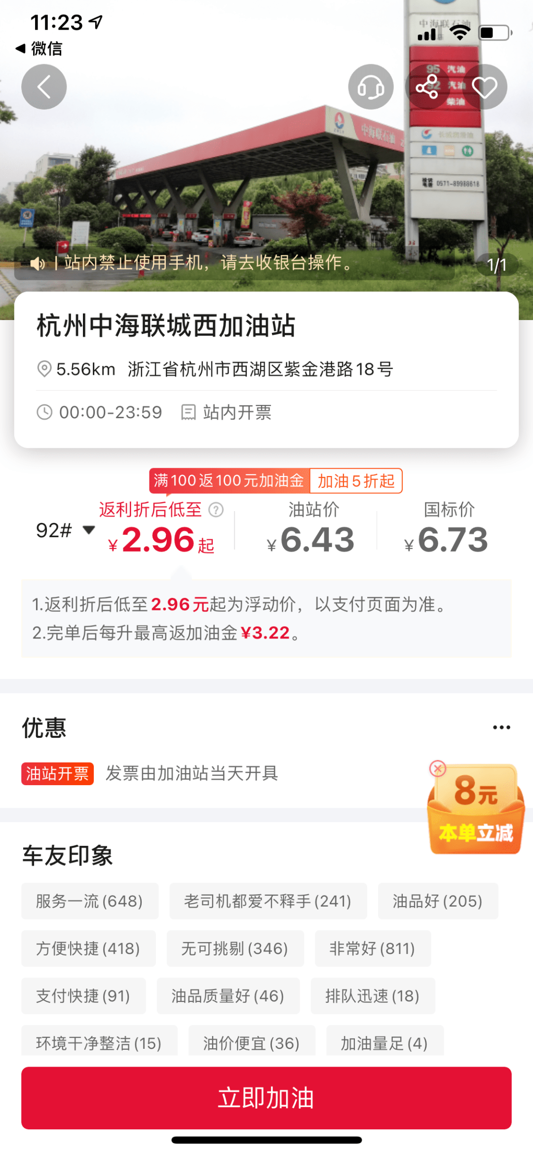 记者家住城西,打开团油APP显示:6公里范围内只有“杭州中海联成西加油站”参与团油活动,开车距离显示是6.3公里。如果是在上班途中去加油,遇上高峰期至少要多花20分钟,意味着油消会比平常更多。